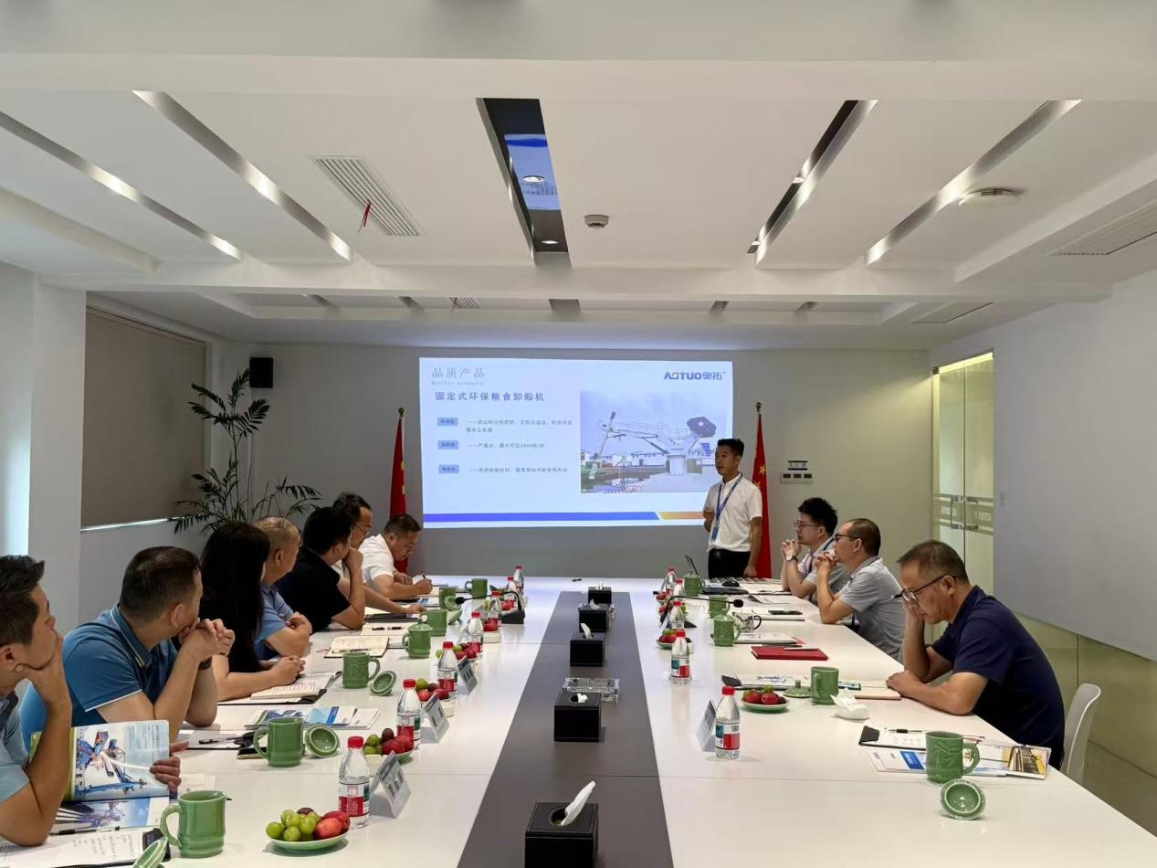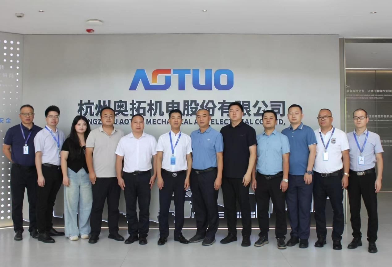 Recent, Yang Libin, membru al Comitetului de partid și director general adjunct al Grupului de transport și port Guizhou, a condus o delegație pentru o inspecție aprofundată și un schimb tehnic. Jigui Bo, președintele și președintele AOTUO, împreună cu echipa tehnică de bază, au găzduit delegația pe toată durata vizitei. Cele două părți s-au angajat în discuții ample pe subiecte precum echipamentele de manipulare a mărfurilor în vrac, procese, digitalizarea porturilor și soluții inteligente de logistică.